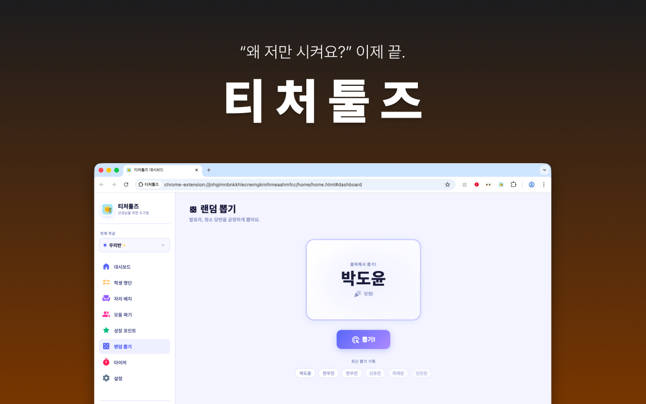 지금 바로 티처툴즈를 추가하고, 더욱 여유롭고 즐거운 교실을 만들어보세요!