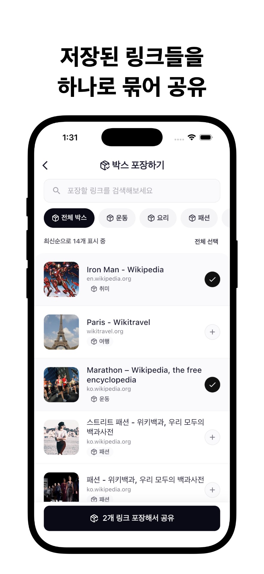 - 검색과 필터로 원하는 링크 빠르게 찾기