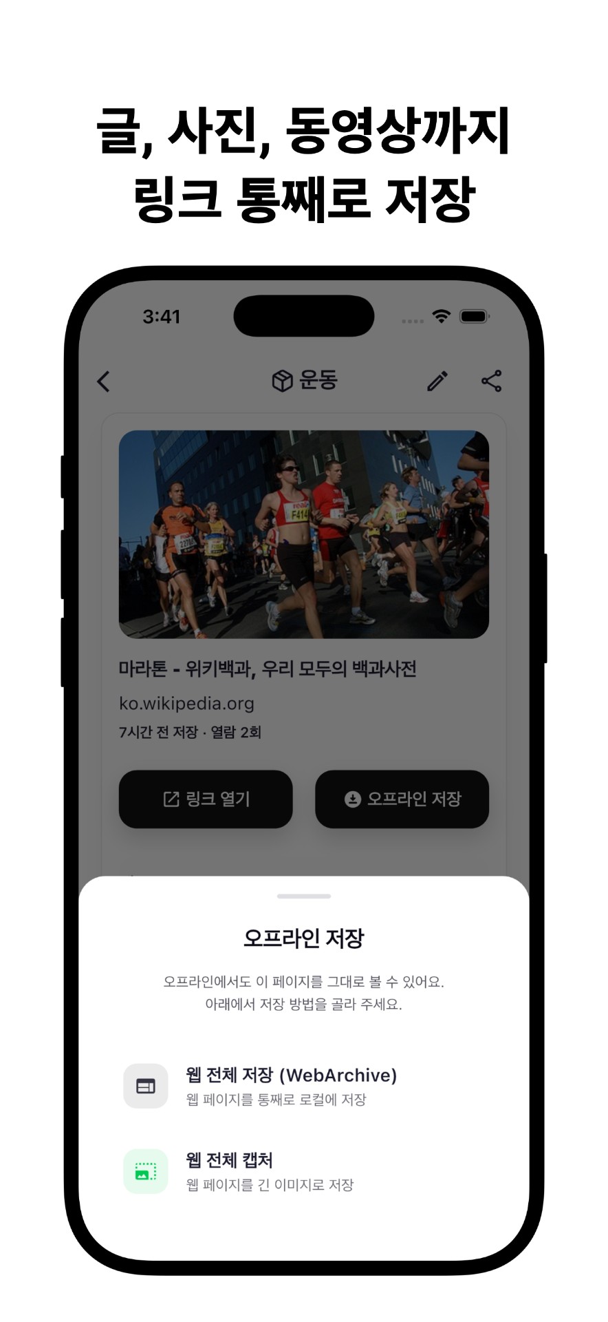 웹 페이지까지 저장되기 때문에, 오프라인에서도 그대로 볼 수 있어요.