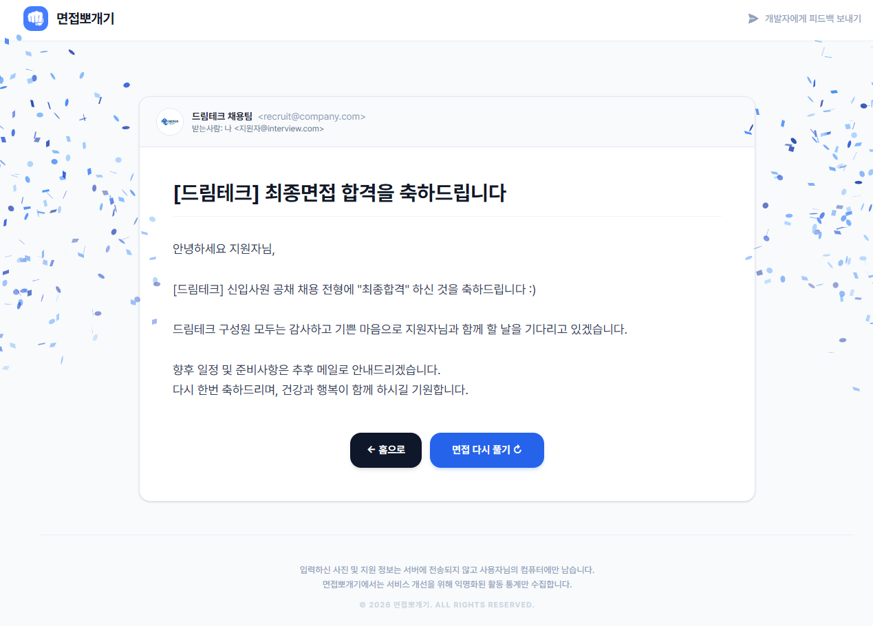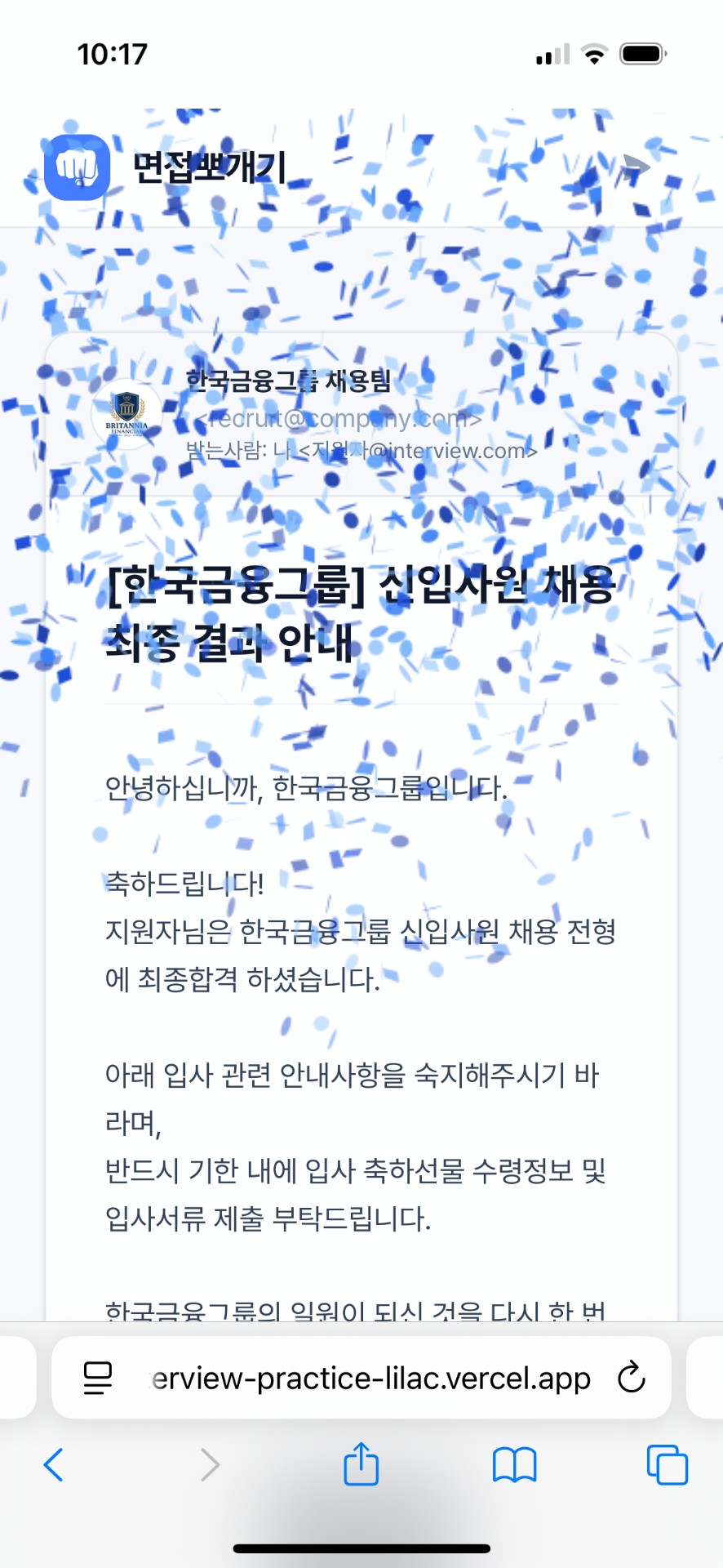 - 면접을 끝내면 최종합격 이메일도 받으실 수 있습니다 ㅎ